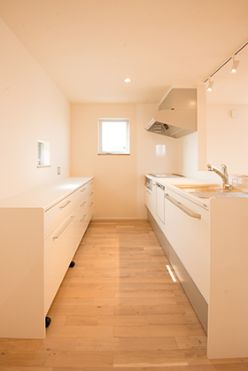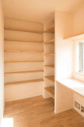 キッチン横のワークコーナー。家事の合間でも、子供の宿題を見てあげる事が出来ます。