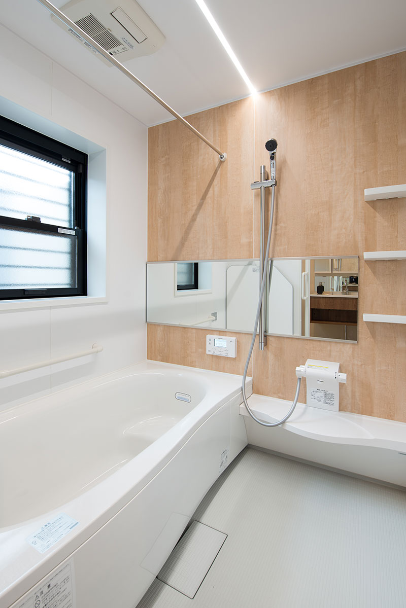 調色ライト、節水シャワーなど多彩なオプション使用のシステムバスとなっております。
