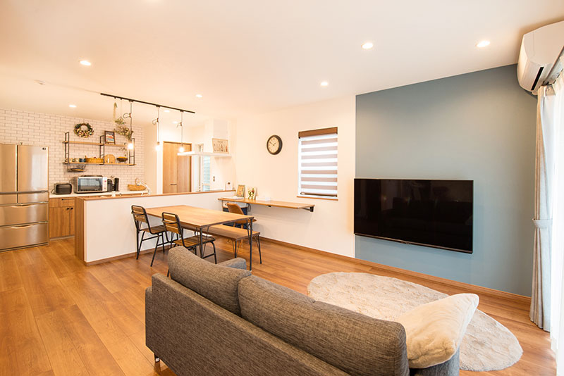 TV背面はクロスを貼り分け、ゾーニングしました。