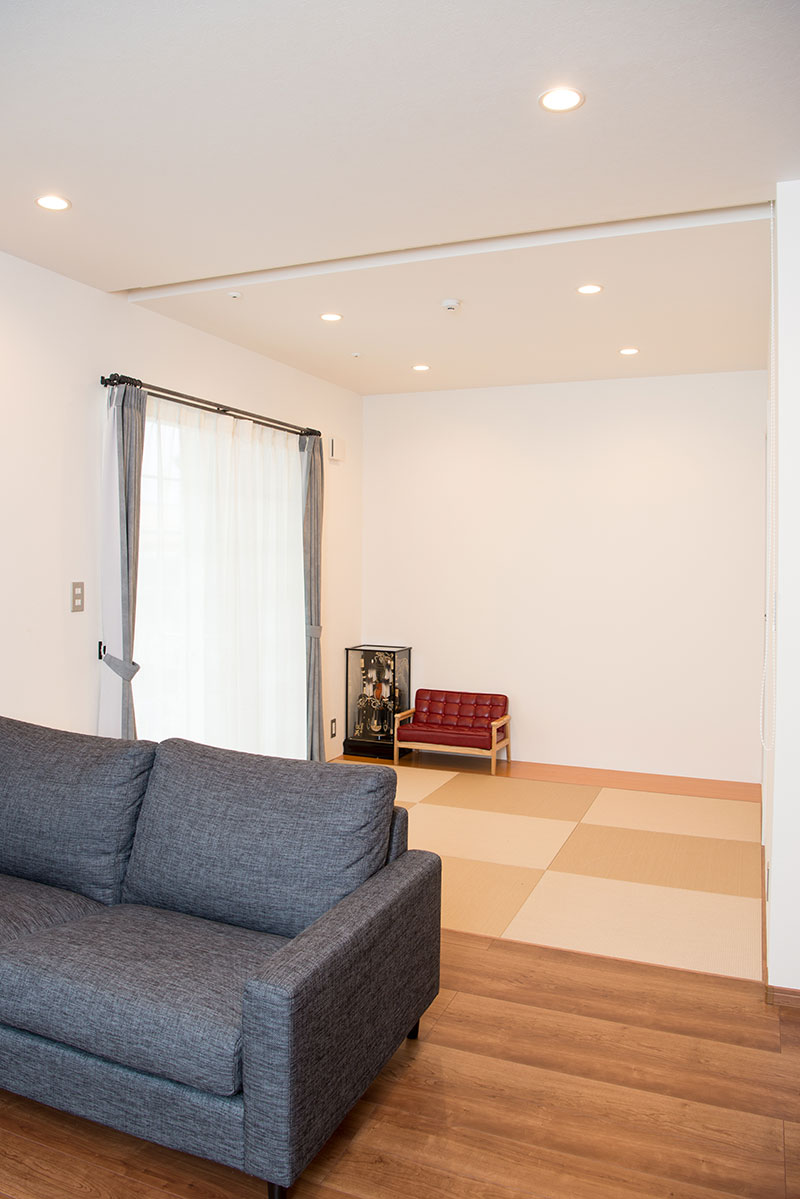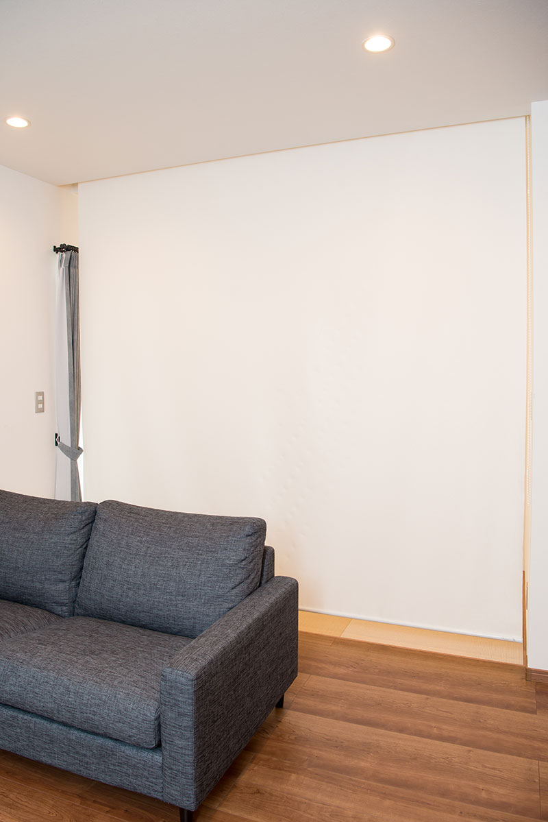 掘り込み部にロールスクリーンを設置し、間仕切り壁として使用する事が出来ます。