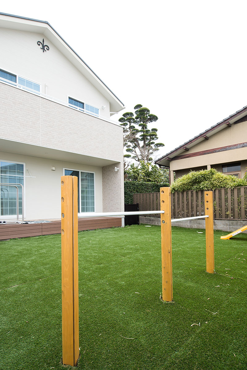 庭には鉄棒を設置。まるで公園です。