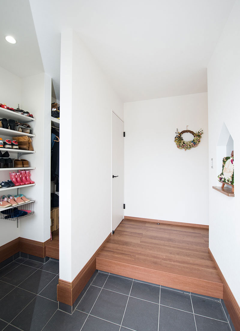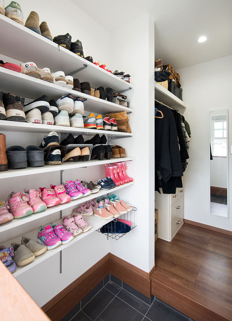 シューズクロークを設置せず、靴用の可動棚を設置しました。