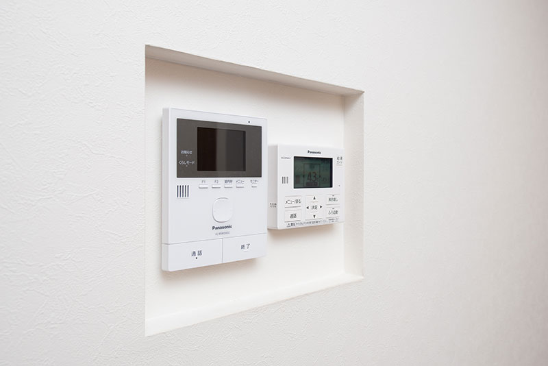 インターフォン、給湯器リモコンをニッチに埋め込むことで、スッキリと設置できます。