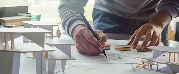 お客様の希望を聞き、法規制や予算を考慮しながら図面を引く。