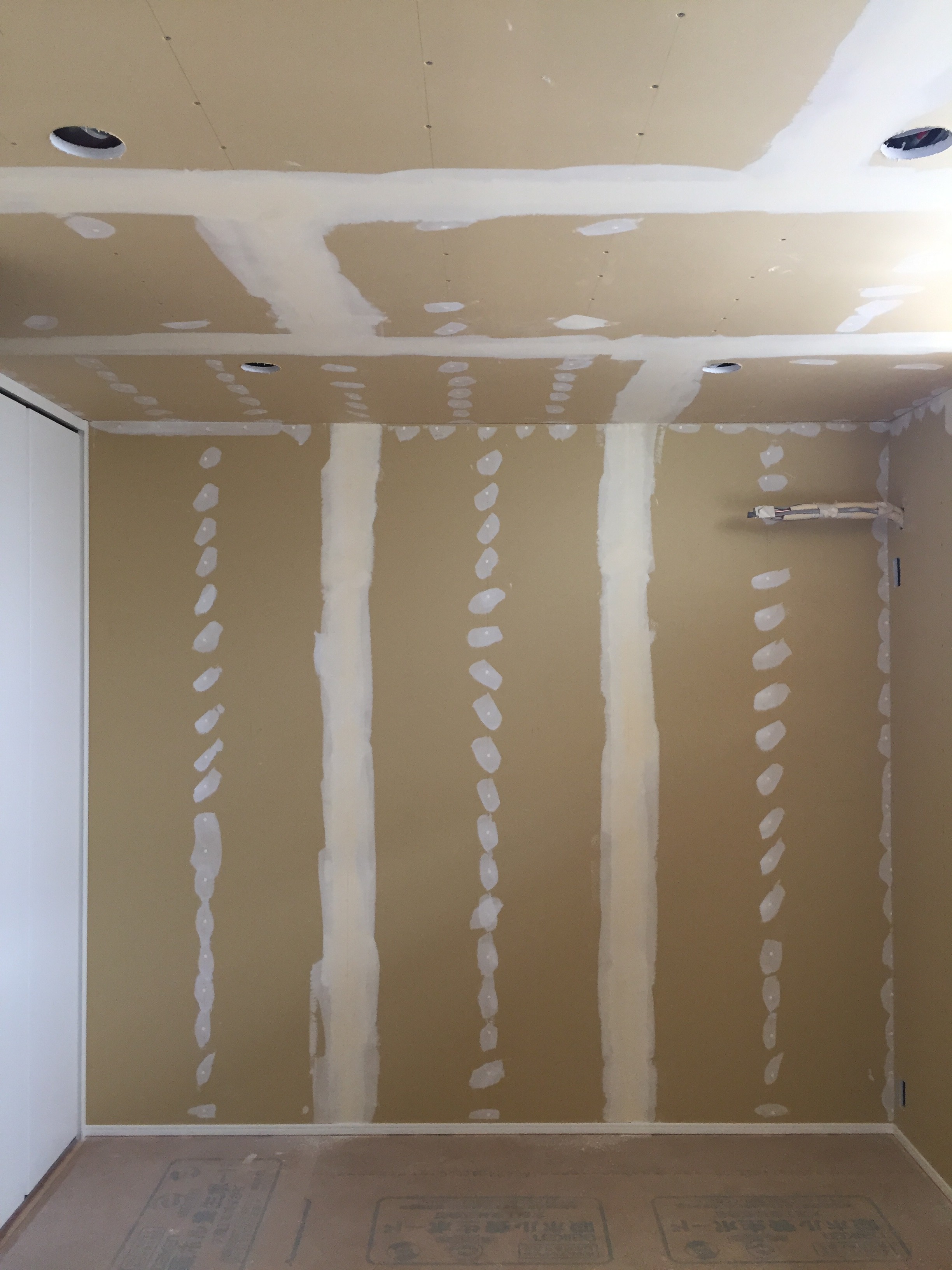 壁材の継ぎ目、ビス穴にパテを塗ります。