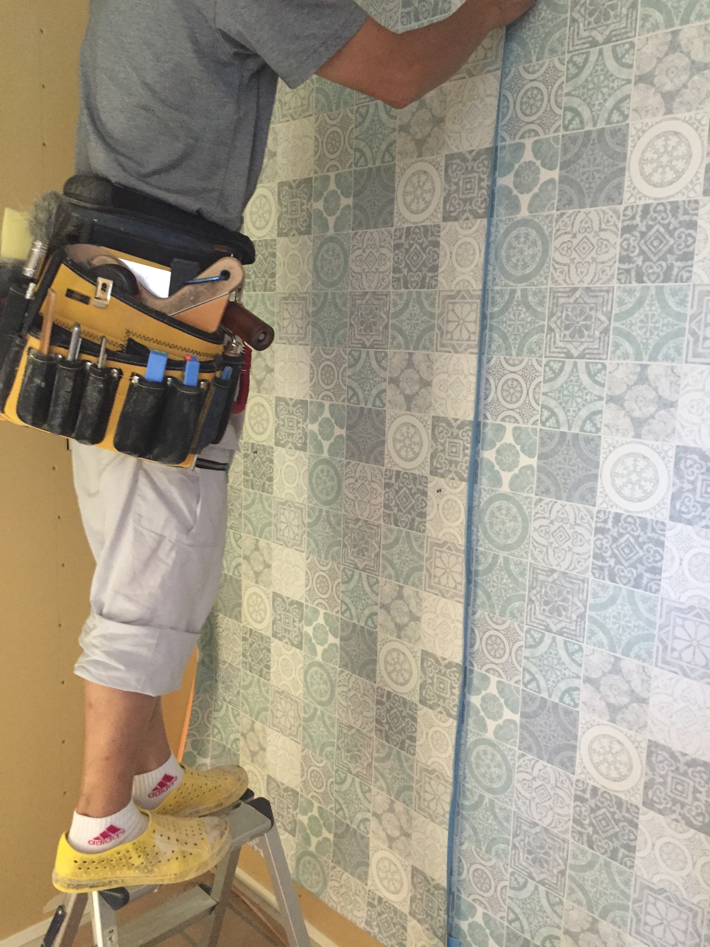↑柄の入ったクロス貼は非常に難しい作業なので、