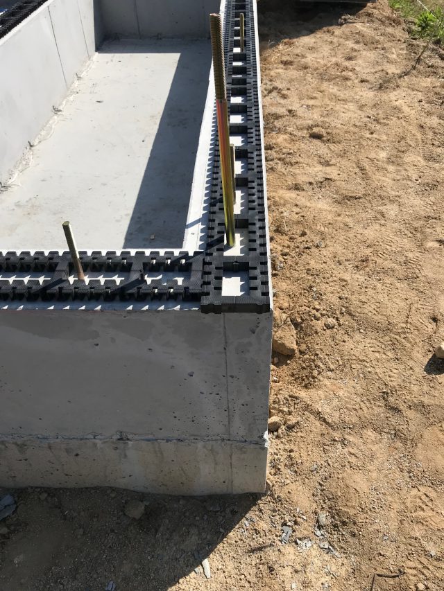 土台材を基礎に固定する前に「基礎パッキン材」を敷きます。