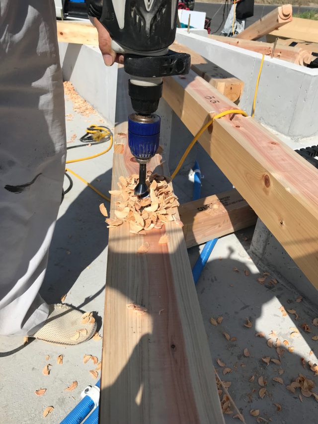 真直ぐに掘らないと土台材を固定する際に材内でアンカーボルトに当たり、