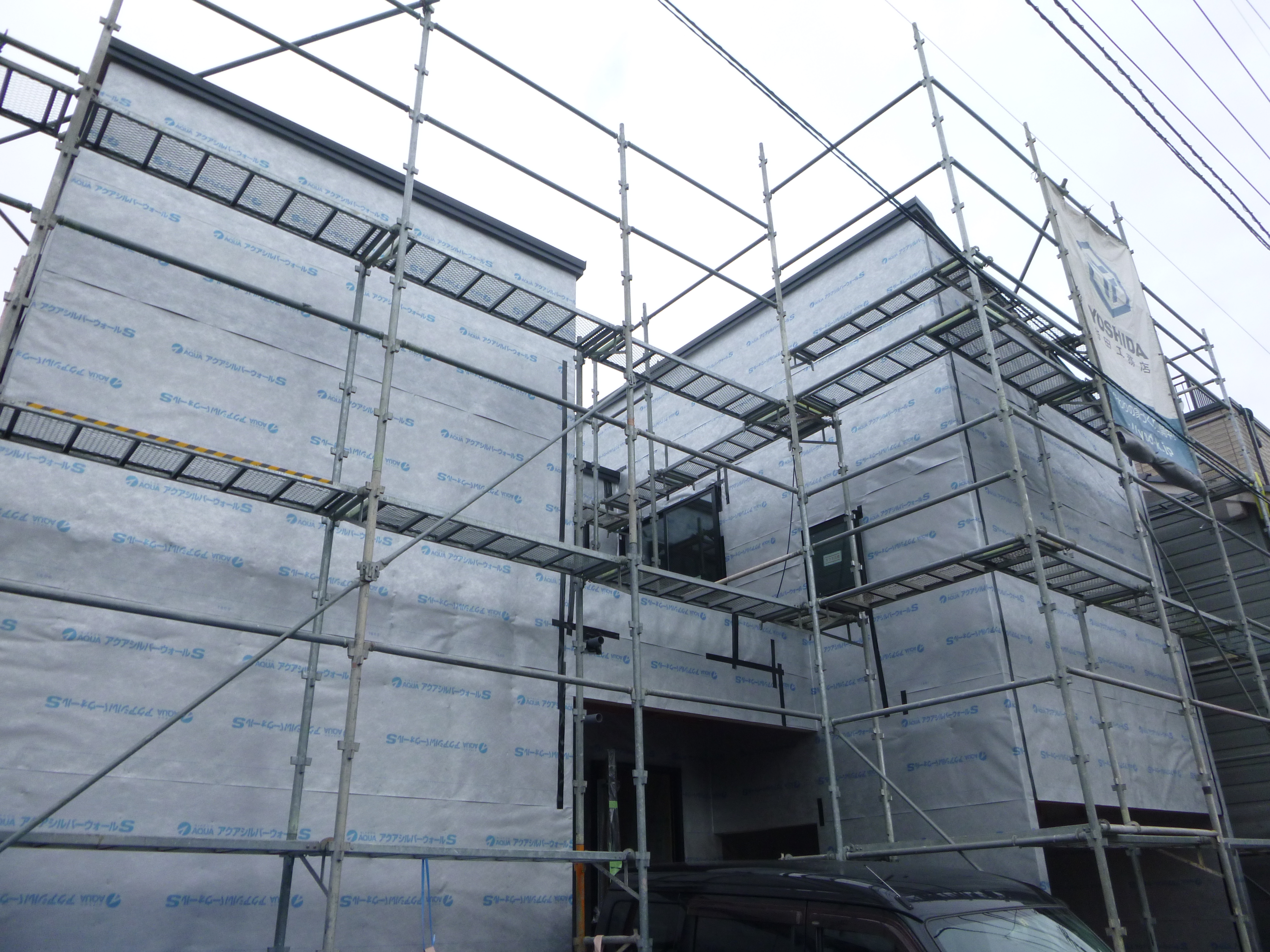 外部透湿防水シート貼りが終わり雨養生は完璧です。