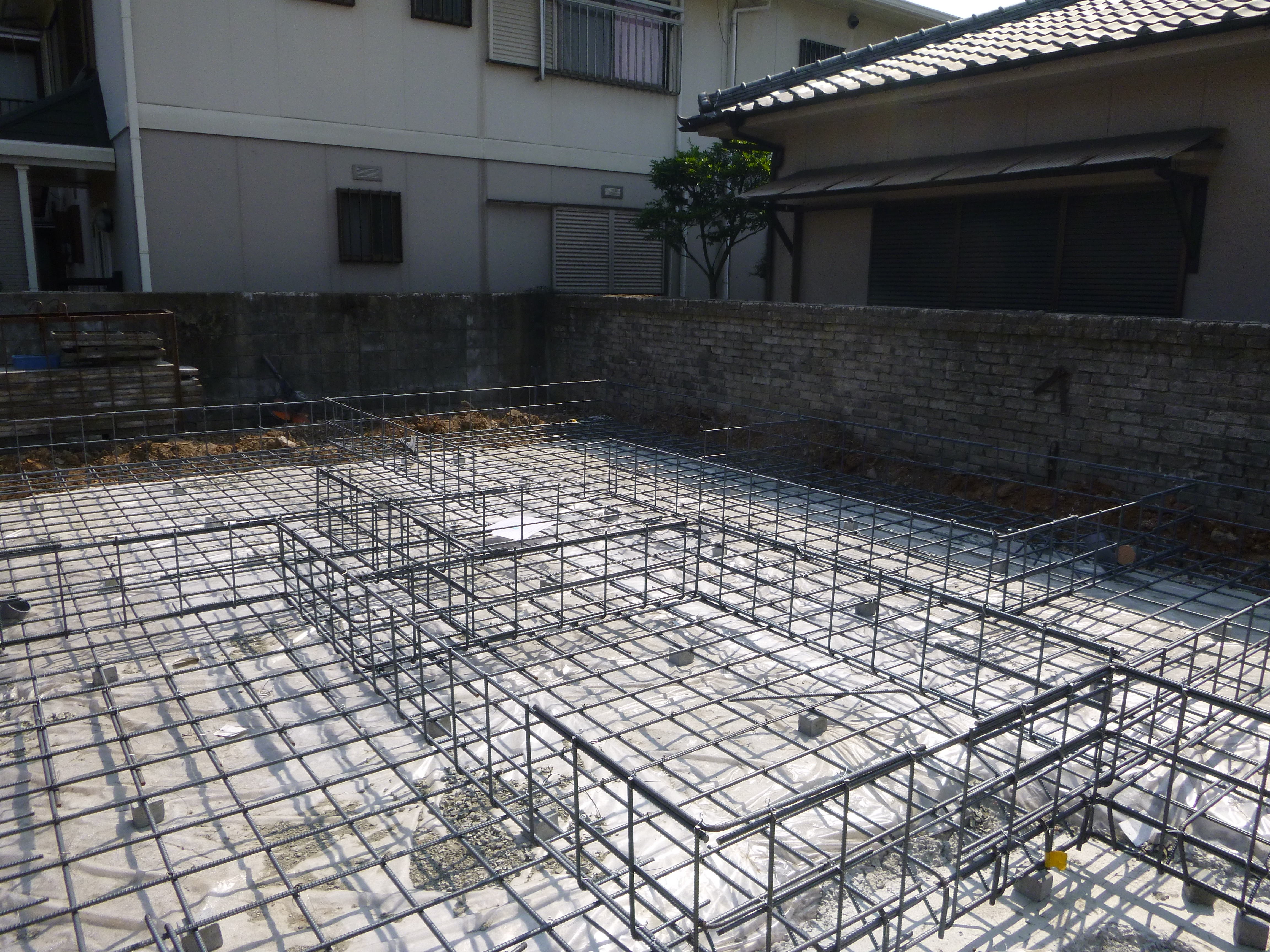 鉄筋の径、鉄筋の間隔、スリーブ補強等、チェックしながら施工していきます。