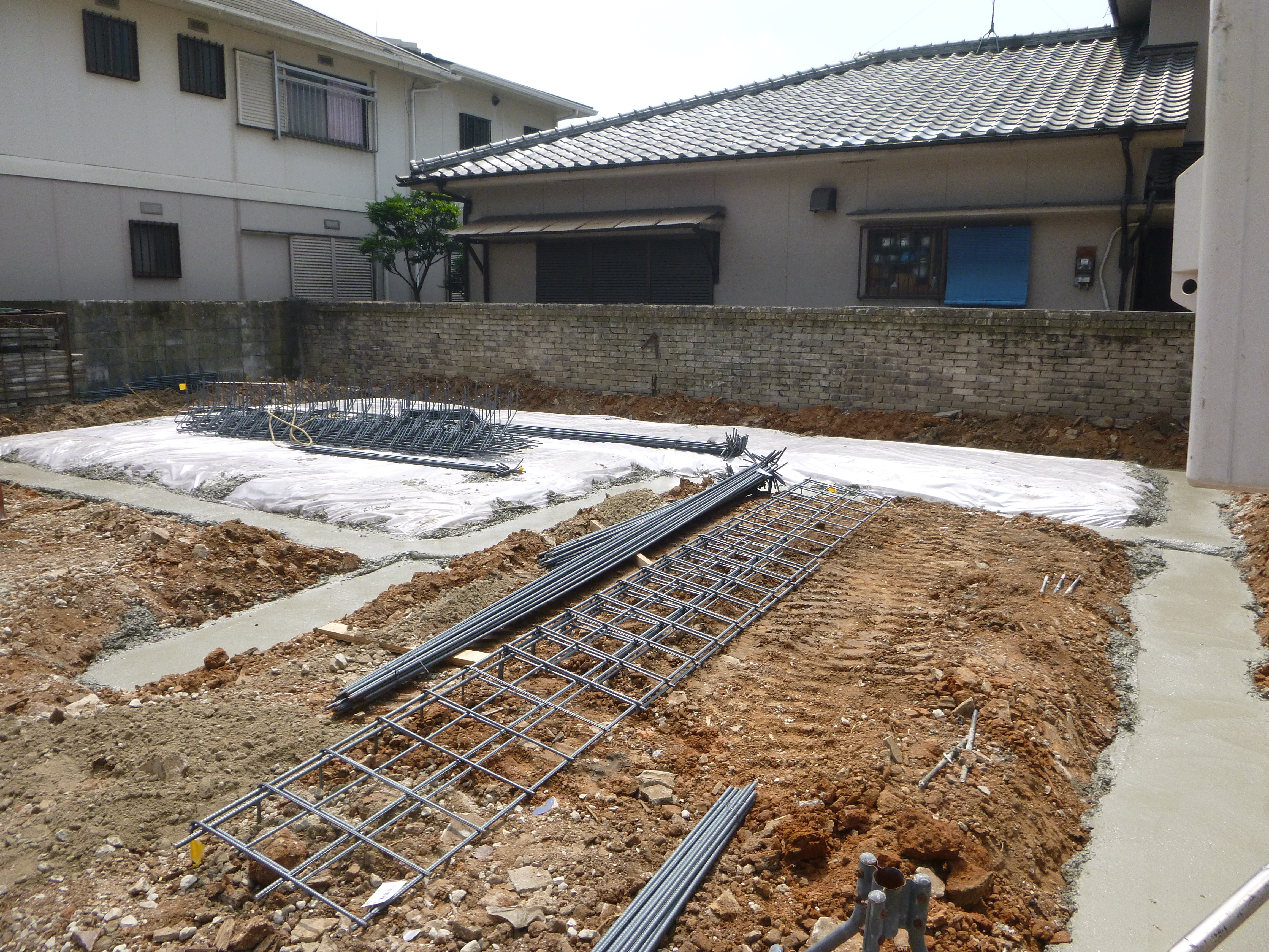 コンクリートを打設後、基礎立ち上がりの墨出し。