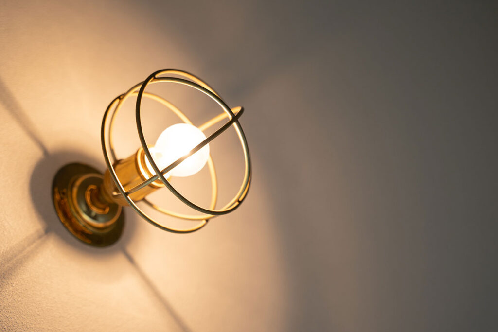 真鍮の質感が美しいブラケットライト。細部にまでカフェのようなこだわりを宿し、壁面に映し出される柔らかな光のラインが、住まいの表情をより豊かに、温かく演出します。